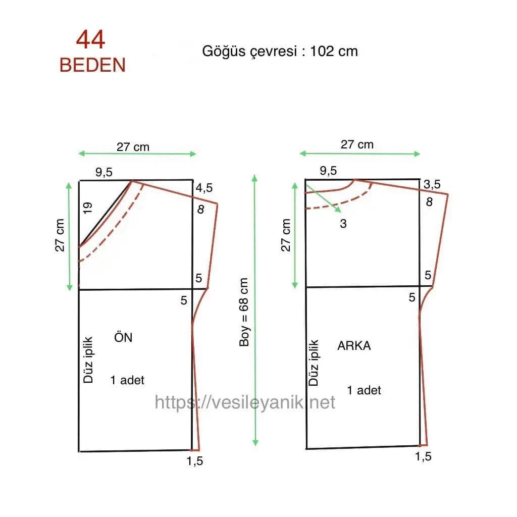 Merhaba kıymetli okuyucularım. Bugün size düşük kollu bir penye buluz modelinin minyatür kalıbını veriyorum. Havalar ısındı. Artık yazlık giysilere ihtiyacımız var düşüncesiyle 44 beden bir kalıp hazırladım.
