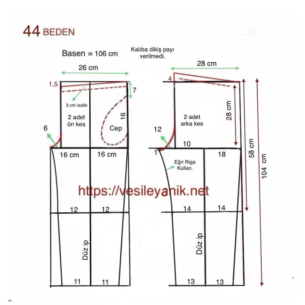 44 Beden Eşofman Altı Kalıbı Ölçüleri:
