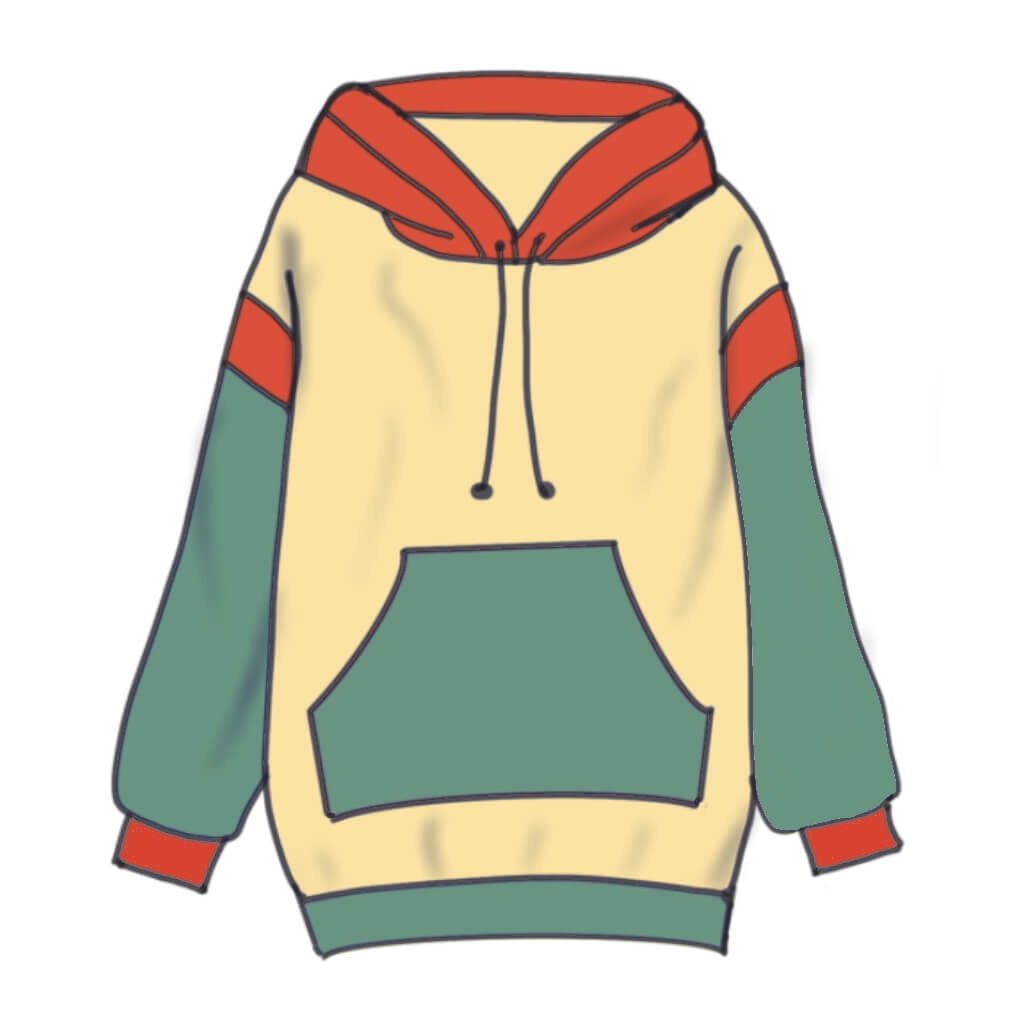 - Kırmızı kalemle çizerek kapüşonun kavisli kısımlarını oluşturun.