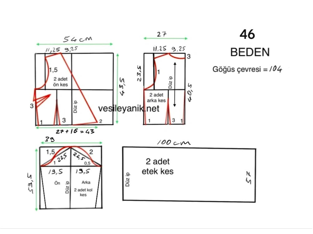 - Bu ölçüler büzgülü bel içindir, pile koymak isterseniz koymak istediğiniz pile genişliğini hesaplayıp 54 cm’ye dağıtın.