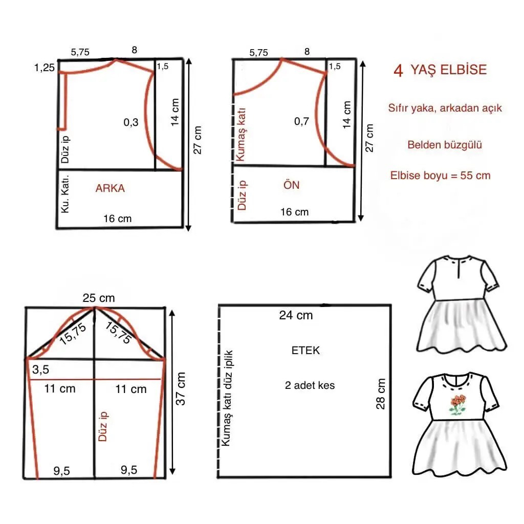 Merhaba kıymetli okuyucularım. Dört yaş kız çocuk için elbisesinin kalıbını isteyen okuyucularım vardı. Bugün size dört yaş kız çocuk kalıbının minyatürünü vereyim, istedim. 4 yaş kız çocuk elbise kalıbına ihtiyacı olanları mutlu edeceğimi umuyorum.